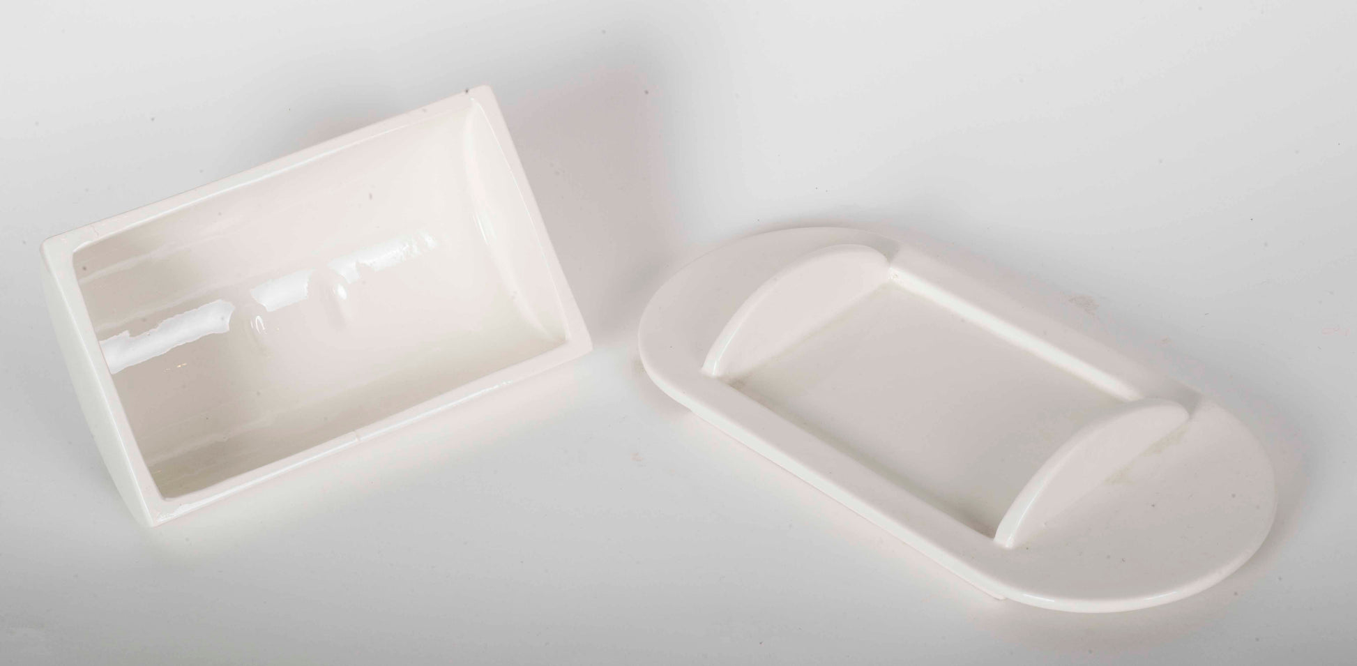 Butter dish in white, pink and green ceramic designed by Marco Zanini and produced by Bitossi in the 80s. Hollywood Collection. Italy
