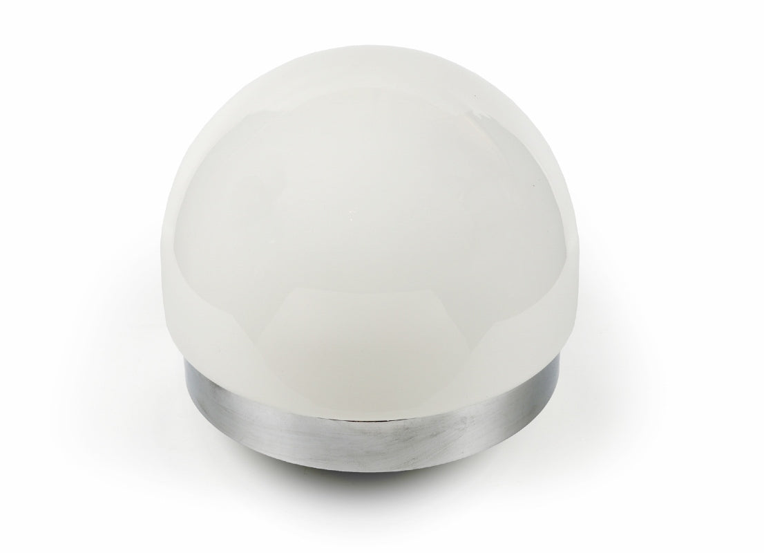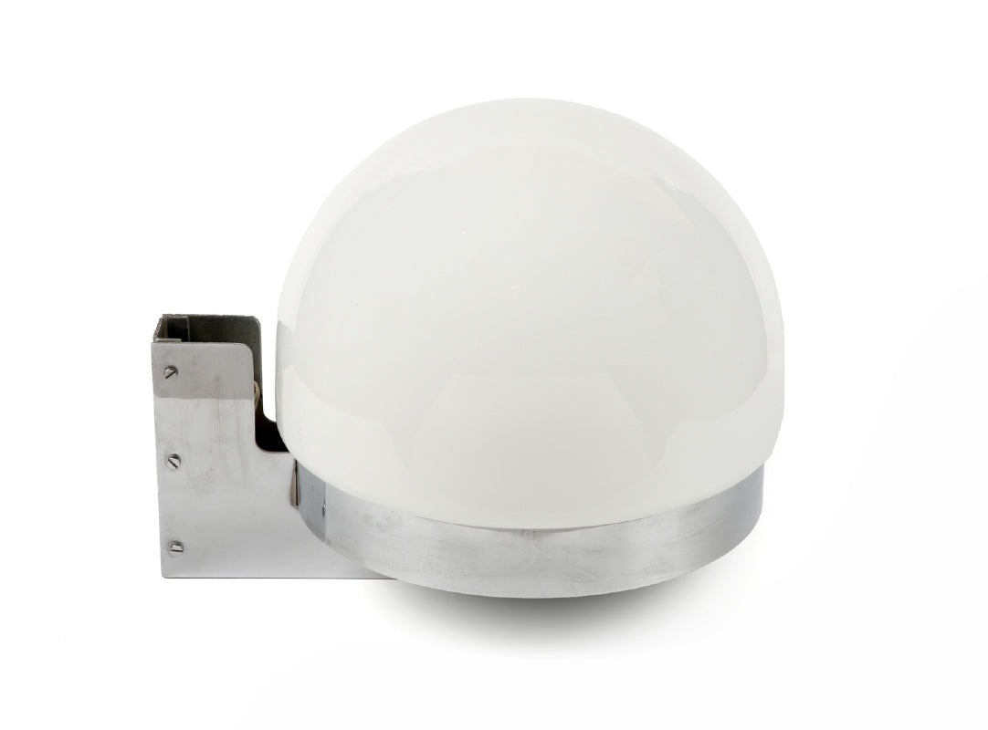 Pair of wall sconces in chromed metal and opaline globe in the Wall Lamp model. Design by André Ricard Sala, a pioneer of Spanish Industrial Design, for Metalarte. 1970s, Spain.