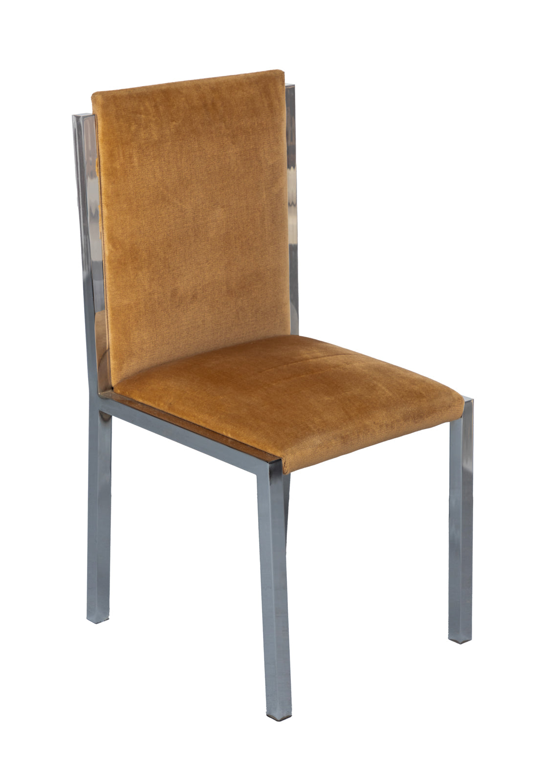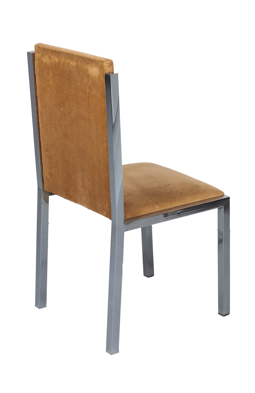Round dining table with six chairs. Large base in chrome and brass with smoked glass Italy, 1970s