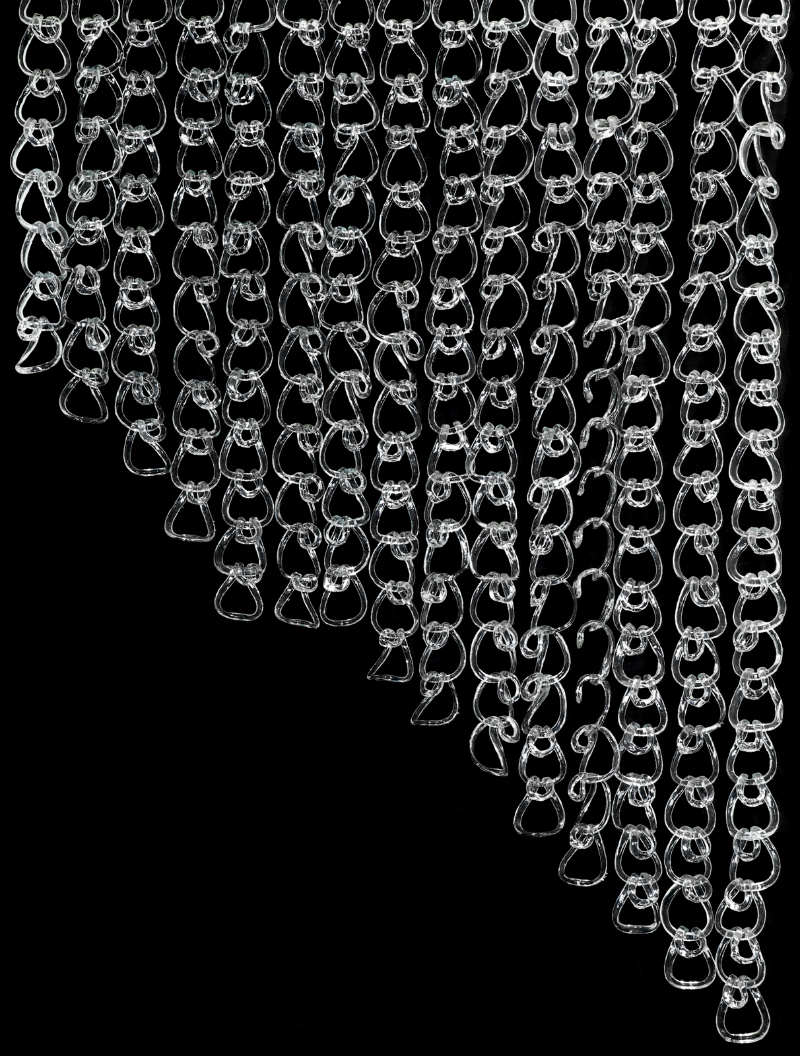Centenas de argolas de cristal, feitas à mão, em vidro de Murano, que poderão ser organizadas conforme o desejado. O modelo “Giogali” ganhou o prémio “Compasso d´oro” na Trienal de Milão em 1969. Na nossa loja em forma de cortina.