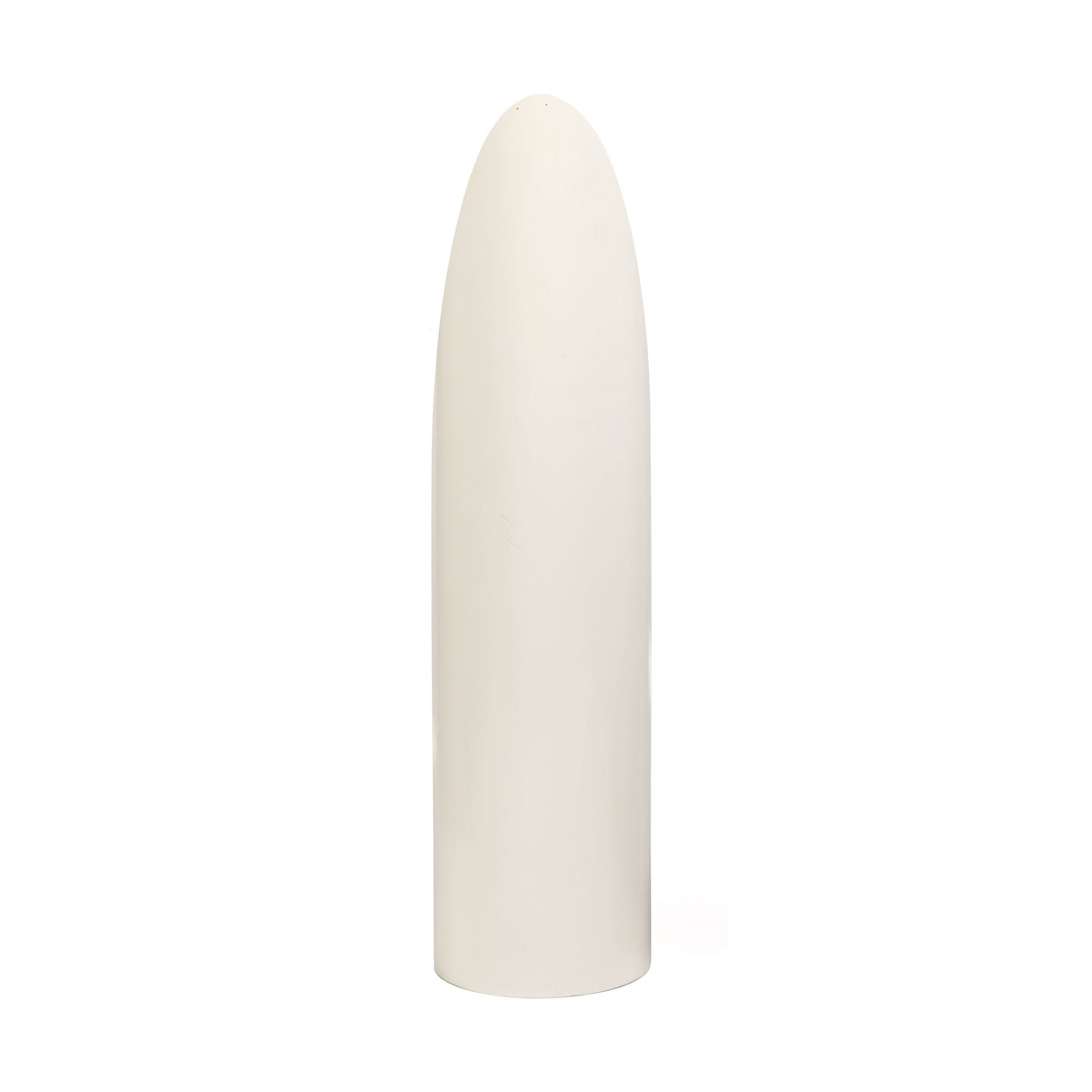 Espelho de mesa lipstick em cor branca de design Space Age, produzido na Itália durante os anos 70. Sua forma cilíndrica com corte oblíquo sustenta um espelho oval que lembra a silhueta de um batom, um ícone do design pop da época.