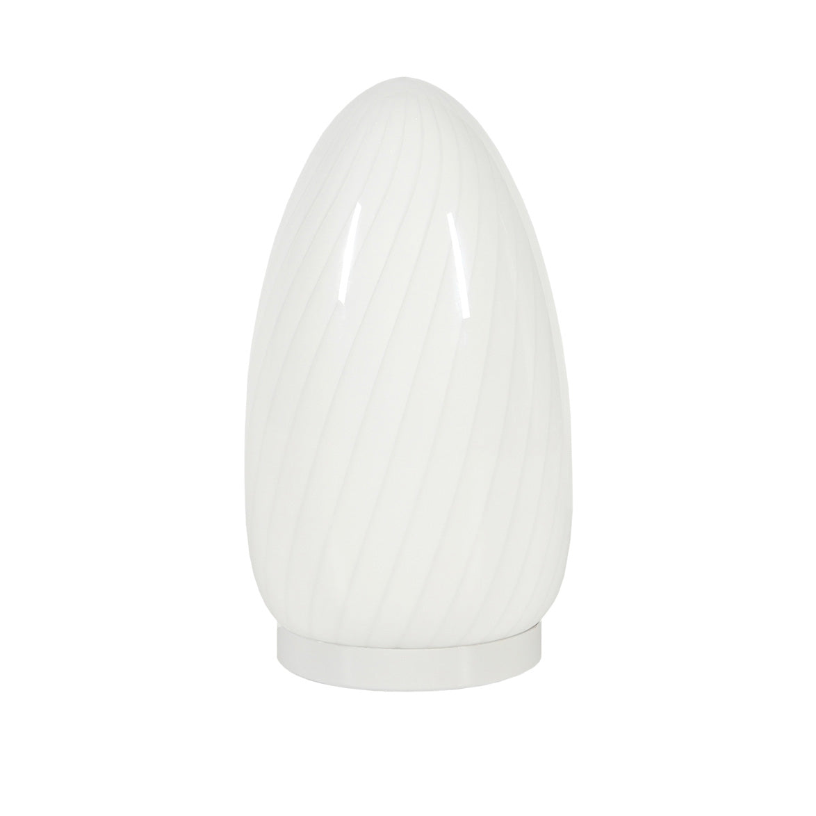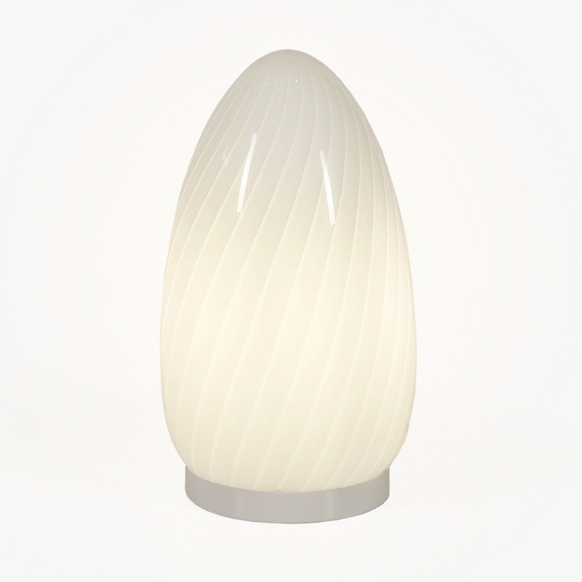 Candeeiro de mesa dos anos 70 em vidro Murano branco com desenho espiral e base em metal lacado branco.