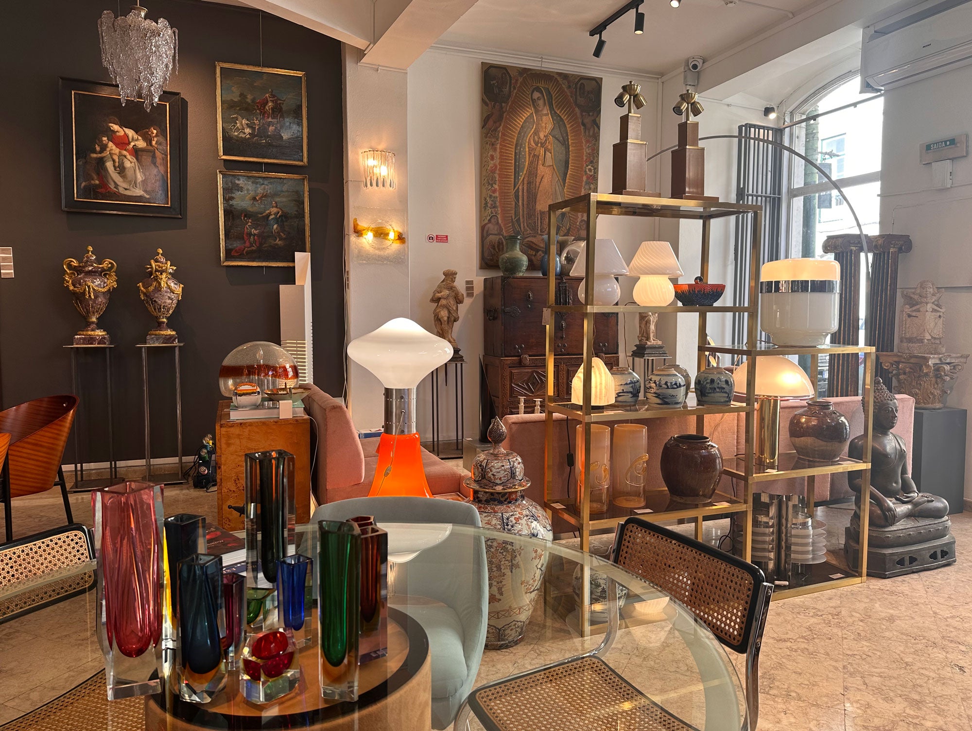 We are a shop specialised in Oriental art, colonial Spanish and Portuguese art, European masters paintings and decorative arts in Europe, Mid-Century modern and Post-modern design, Italian and Scandinavian items.